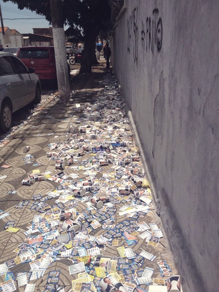 Santinhos são espalhados pelas ruas próximas a zona eleitoral.