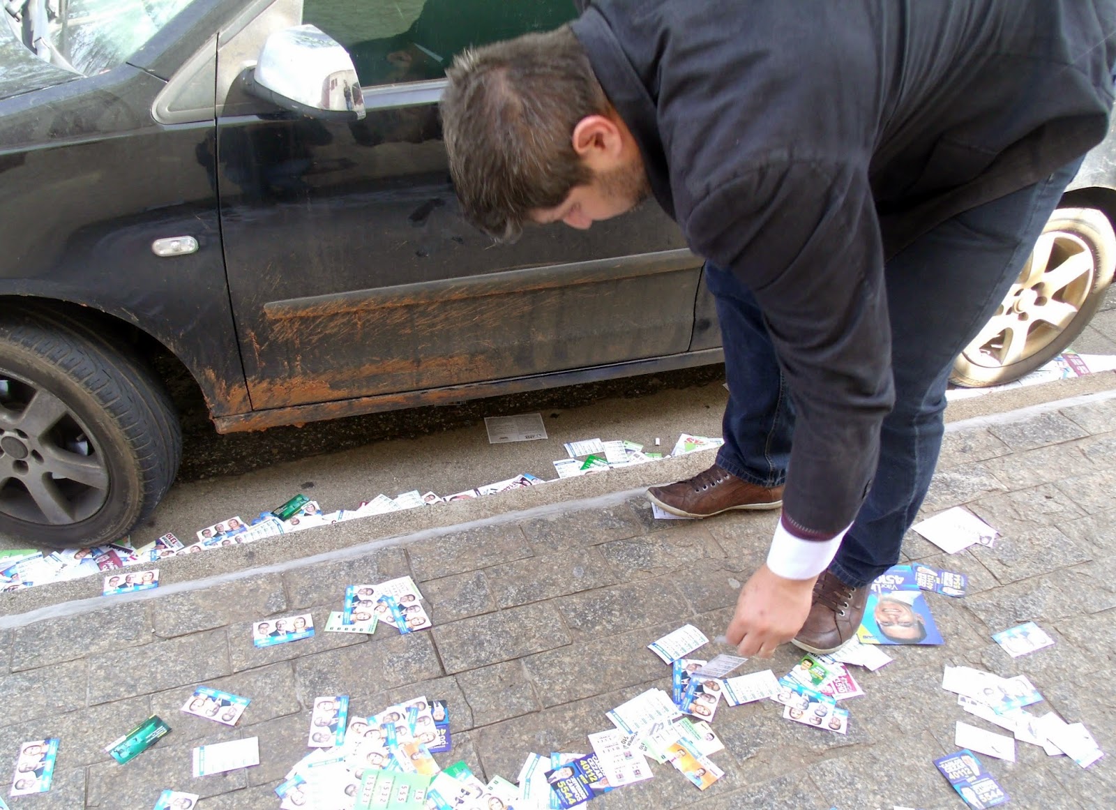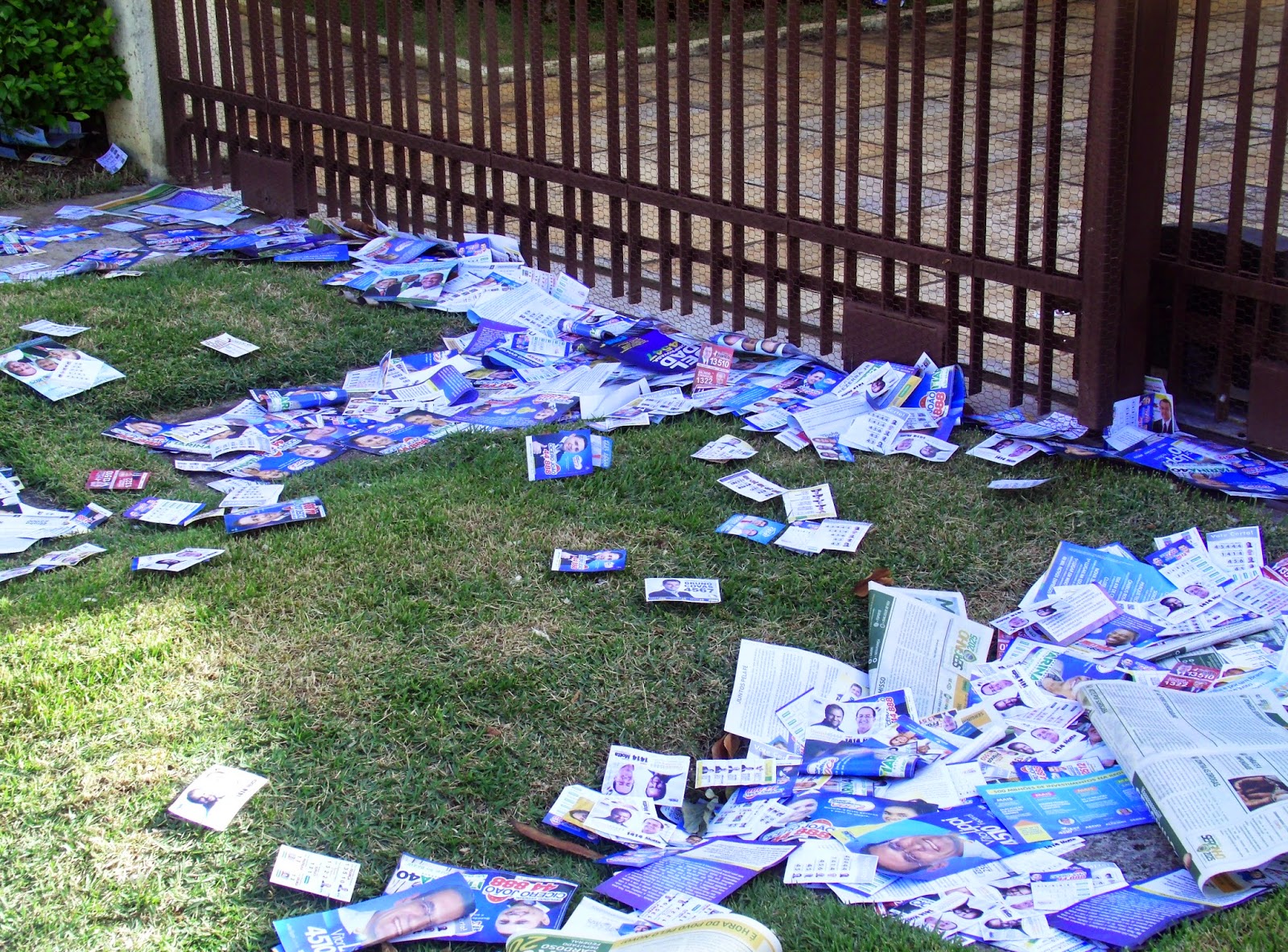| Zonas eleitorais da cidade de Sorocaba ficam tomadas pela sujeira de panfletos durante as eleições 2014 |