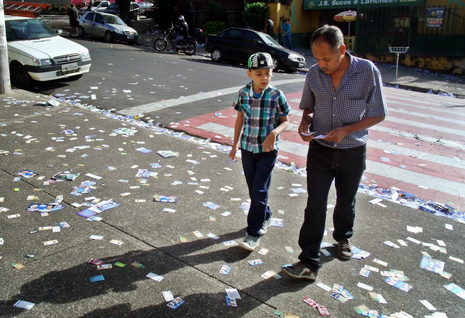 Zonas eleitorais da cidade de Sorocaba ficam tomadas pela sujeira de panfletos durante as eleições 2014
