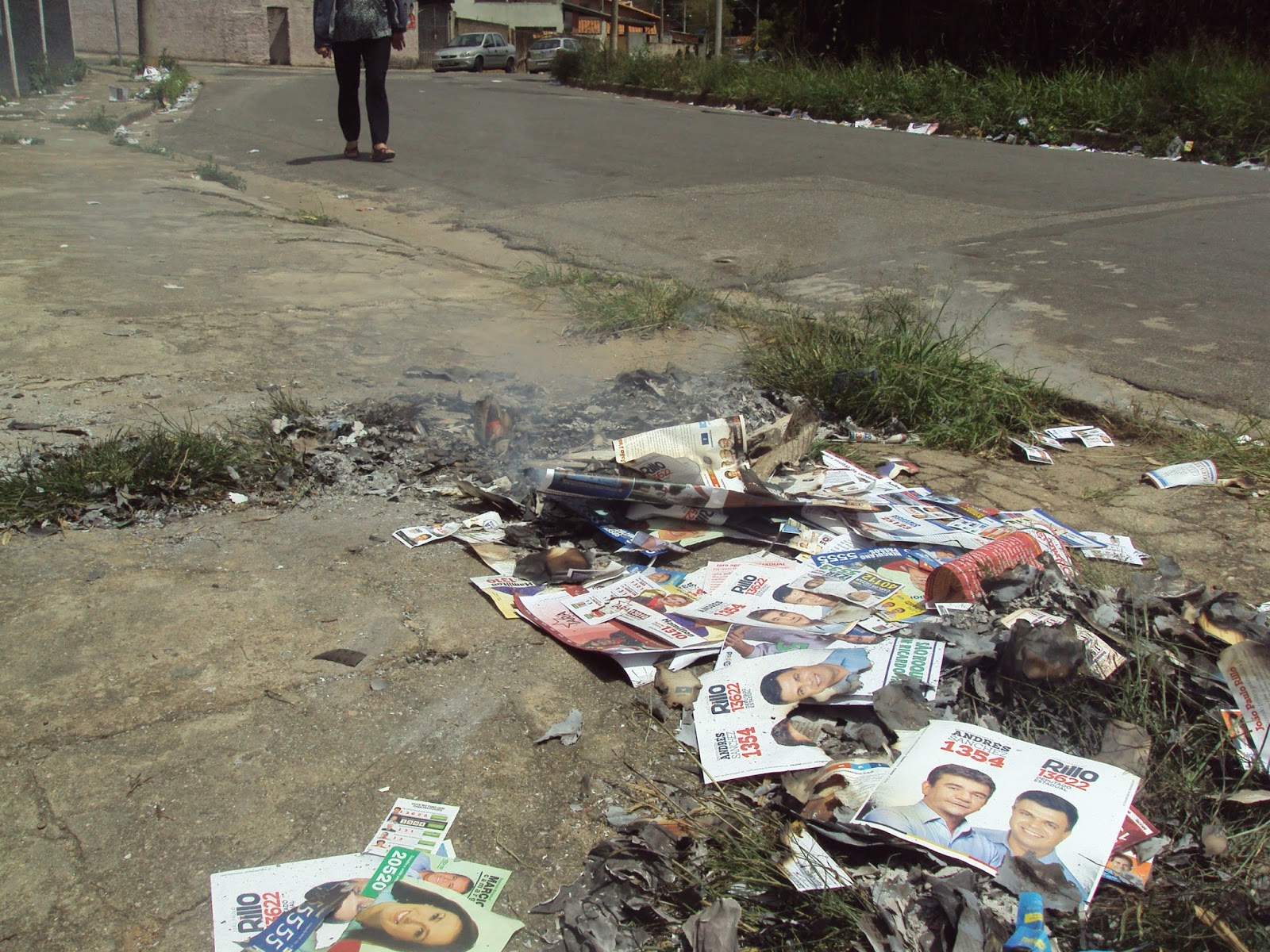 | Flagrante de queimada em panfletos eleitorais no Bairro Vila Aguiar – São Roque-SP