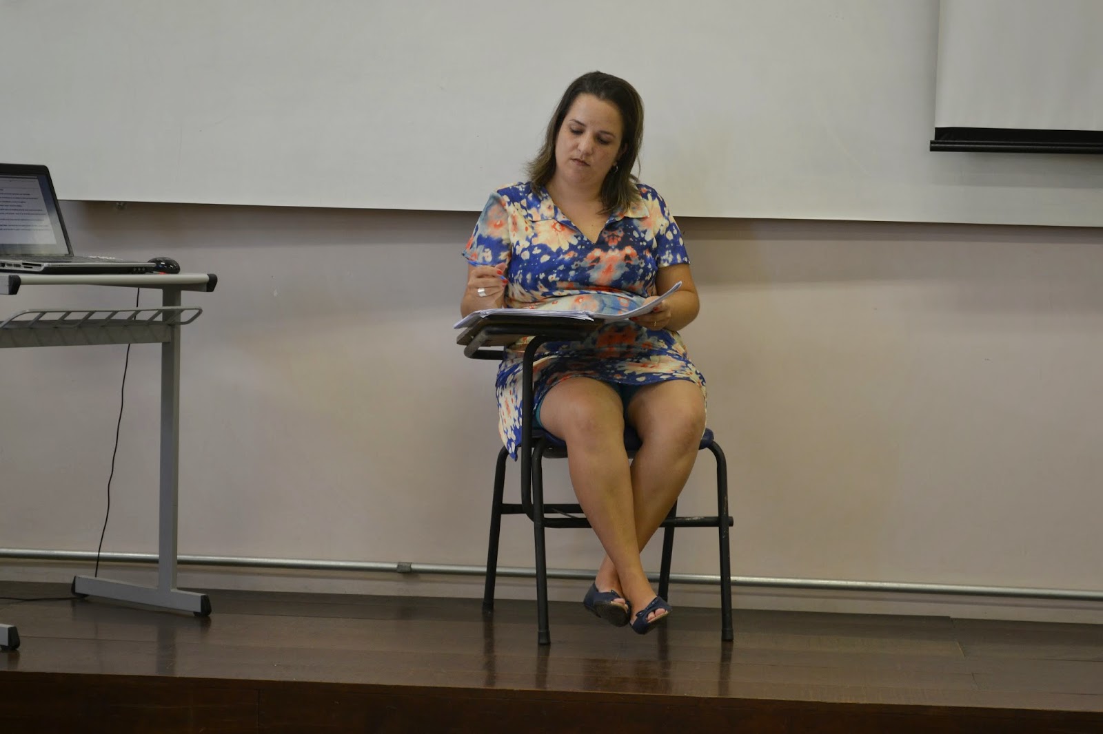 A mestranda Jéssica Bastida Razl em sua defesa de Mestrado