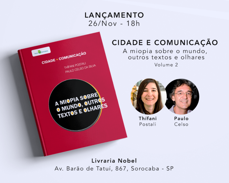 A professora Thífani Postali, dos cursos de Comunicação da Universidade de Sorocaba (Uniso), lança o segundo volume da obra “Cidade e Comunicação – a miopia sobre o mundo, outros textos e olhares”, neste sábado, 26, às 18h, na Livraria Nobel, em Sorocaba. A publicação foi produzida em parceria com o professor doutor Paulo Celso da Silva, docente do Programa de Pós-Graduação em Comunicação e Cultura da Uniso. O livro reúne materiais publicados no jornal Cruzeiro do Sul, Gazeta de Votorantim e textos inéditos. A intenção do conteúdo é possibilitar olhares críticos acerca de temas do cotidiano em relação a produções midiáticas. São tratados temas como jornalismo, consumo, novela, publicidade, fotografia e internet. A publicação conta com apresentação do ex-reitor da Uniso, professor Aldo Vannucchi, prefácio do professor Marcelo de Barros Ramalho e posfácio da professora Marli Gerenutti.
