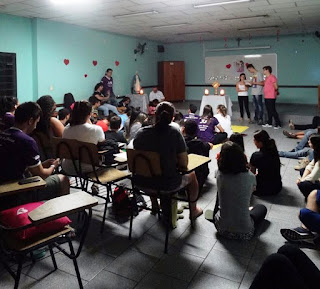 Anna Laura Rodrigues Alba (18), organizadora do evento, explica que o tempo para formalizar o tema “Deus, nós e nossa família” e planejar a decoração, reflexões, dinâmicas e palestras foi de dois meses.