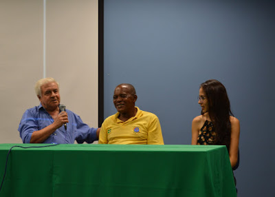 O Mestre e professor Marcel Stefano mediou a apresentação agradecendo a presença dos convidados e falando da satisfação em receber presenças importantes na universidade, inclusive a do homenageado da noite, Paraná.