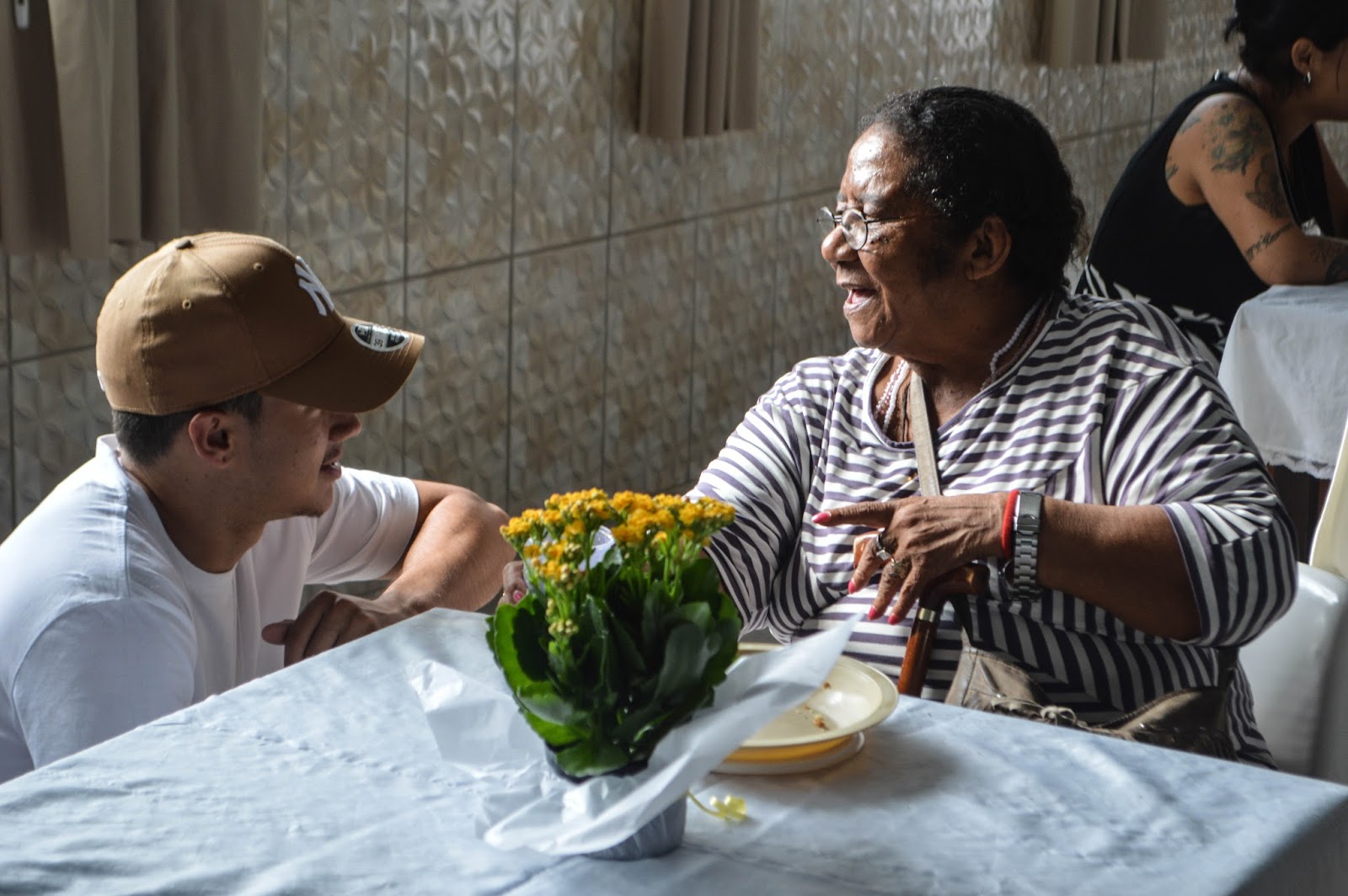 Maria Benedita Arruda Silva, 72, vive há dois anos no asilo, para ela, essa ação possibilita conversar com mais pessoas. “Eu acho que os jovens deveriam vir sempre, nós, velhos, gostamos deles”.