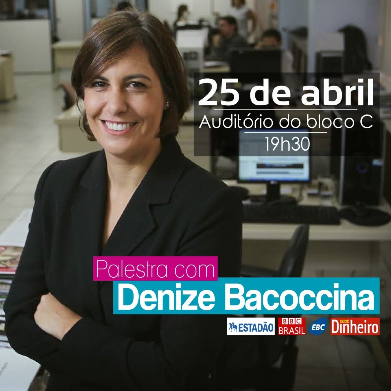 Alunos do curso de Jornalismo da Uniso receberão a jornalista Denize Bacoccina. A palestra acontecerá nesta terça-feira (25), às 19h30, no Auditório C da Cidade Universitária.