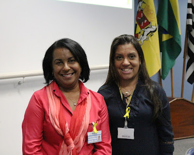 Funcionárias da Uniso com o laço amarelo da campanha de conscientização
