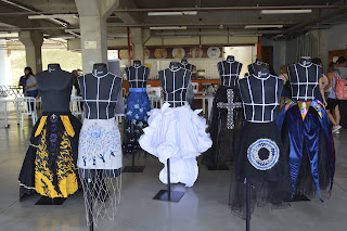 Oficina de costura – Logo após o término da primeira programação principal, na parte externa do bloco F, estavam distribuídas máquinas de costura em pequenas mesas, para que os alunos pudessem ter a experiência de confeccionar uma bolsa com a escrita “eu amo costura” e levá-la para casa. Esta oficina funcionou durante todos os dias de evento, para alunos e interessados em costura. Ao lado da oficina, o público também acompanhou uma exposição de peças de roupas da moda.