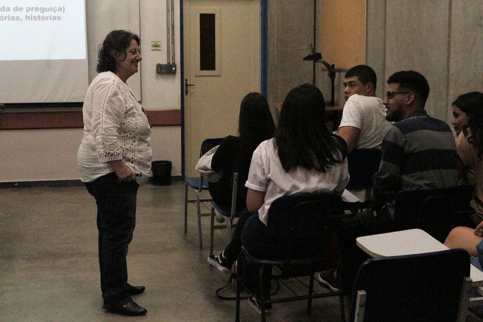 | A jornalista Helena Gozzano palestra para alunos na Universidade de Sorocaba |