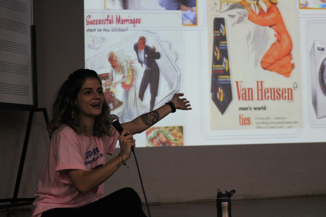 Isabela Garcia exibiu alguns exemplos de propagandas e reportagens sexistas durante sua apresentação |