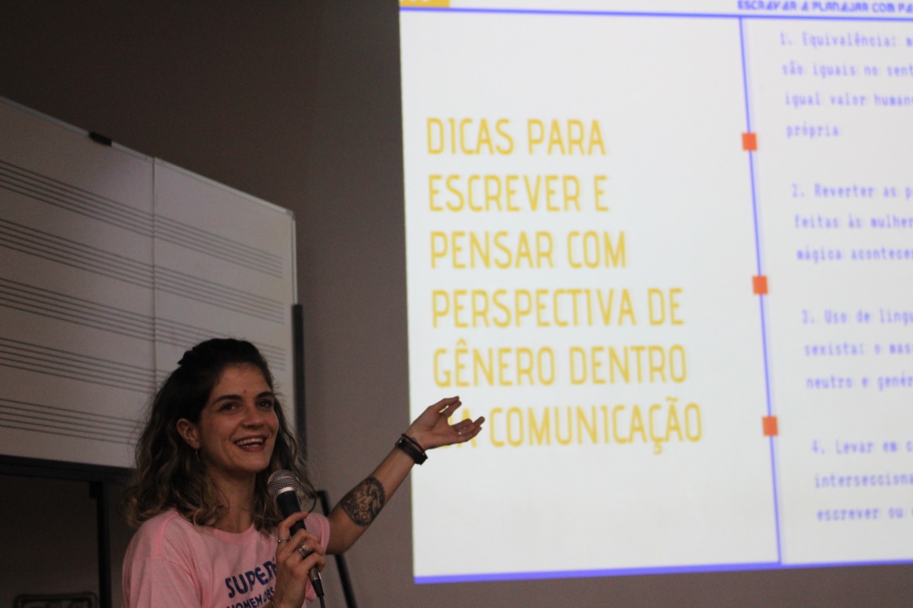 Apesar do assunto delicado, o público também recebeu dicas de como escrever e pensar em peças de comunicação com conceitos que não corroborem com o machismo |