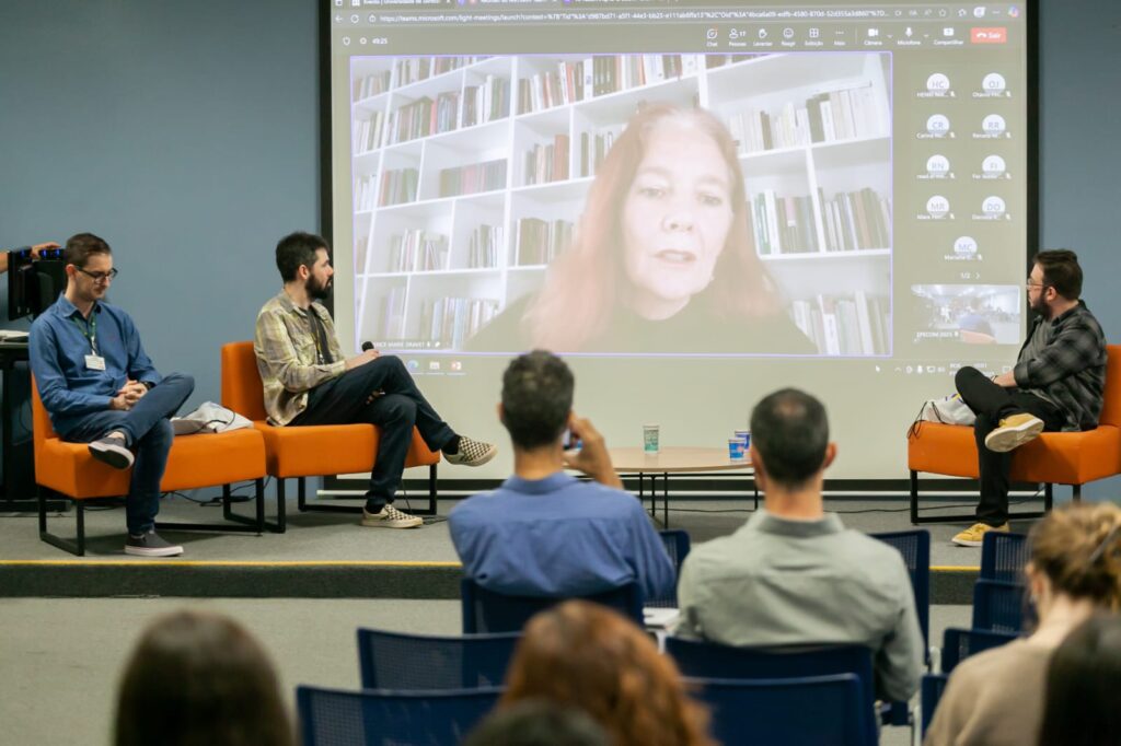Com o tema Entre o Bem e o Mal: Inteligência Artificial, Visões Antagônicas e os Estudos em Comunicação participaram da mesa, junto com Florence, os professores Luis Roberto Albano (Uniso) e Bruno Aguilar da Cunha (Uniso), com mediação do professor Guilherme Profeta (Uniso).