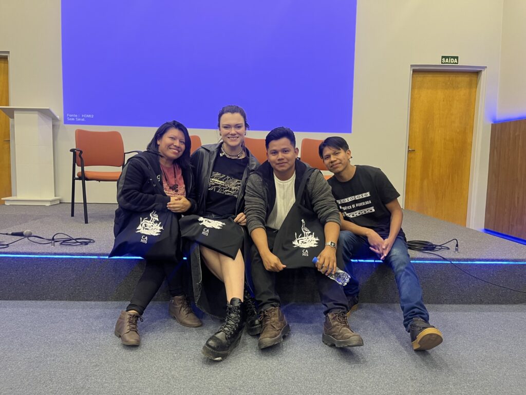 Realizado no anfiteatro da biblioteca do campus cidade universitária professor Aldo Vannucchi, o encontro contou com a presença de Claudilene Pedrosa, Cristian Miguel Brazão e Elvis Cristiano Ventura, membros do Centro de Convivência Indígena da Universidade Federal de São Carlos (CCI-UFSCAR), organização estudantil composta por estudantes universitários indígenas da UFSCar Sorocaba. Os convidados trouxeram para o encontro perspectivas e experiências sobre o direito à memória e à autorrepresentação como contraponto à forma como museus pautados por uma ótica estrangeira e eurocêntrica promovem o apagamento e, de certa forma, o abandono da história dos povos indígenas. Um exemplo pode ser observado no Museu Histórico Sorocabano em que, segundo Claudilene, “aqueles quadros tem uma história distorcida da realidade”, se referindo aos quadros em que aparece Baltazar Fernandes, fundador da cidade, sendo retratado como um pacificador entre os bandeirantes e os indígenas. Elvis pontuou ainda que os quadros “eram pinturas encomendadas”.