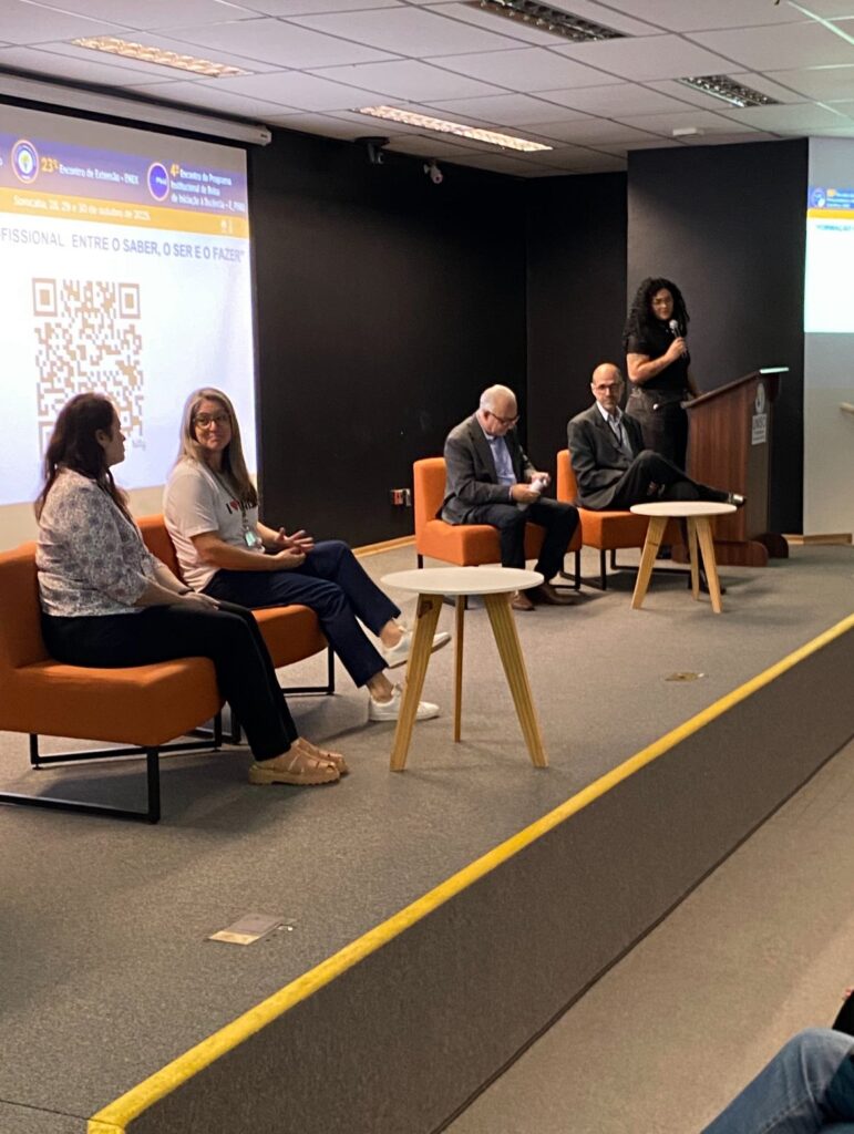 Iniciando as atividades no primeiro dia do 28º EPIC, 23º ENEX e 4º E_PIBID, a roda de conversa “Do Saber ao Fazer: Educação, Comportamento e Profissão” contou com a presença dos professores da Universidade de Sorocaba (Uniso) André Luiz Sueiro, Angela Maria Ramos Profa e Maria Alzira de Almeida Pimenta.