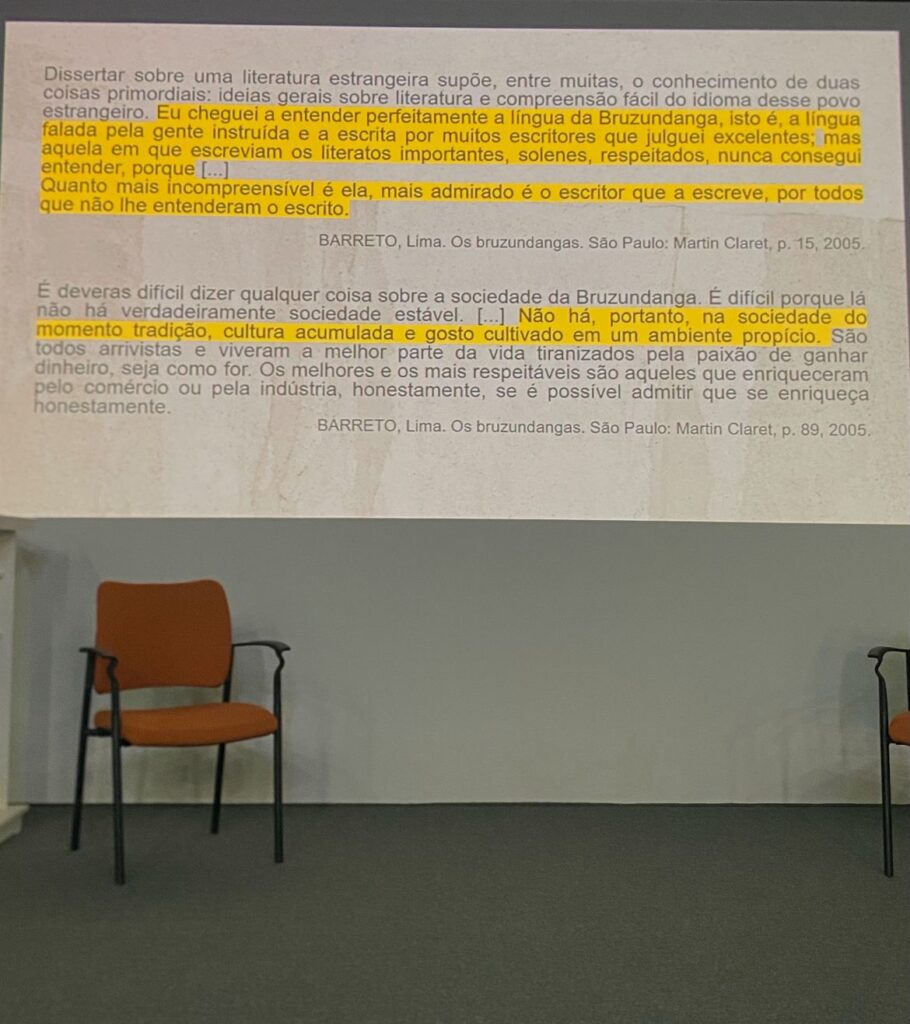 Lima Barreto, um dos autores citados por Santos, utilizava a ironia e um humor ácido em suas obras, o que era muito comum na literatura no século XIX. Esse tipo de ironia causava desconforto na sociedade da época, por isso o escritor passou a ser chamado de vagabundo e de “bêbado que escreve”. As críticas de Lima Barreto eram direcionadas ao movimento parnasiano, do fim do século XIX e início do século XX, que pregava a importância de olhar para o passado e preservar os ideais de uma sociedade pautada pela segregação racial. Santos citou uma obra de Lima Barreto em que o autor diz: “Esse país não tem tradição, a população está mais preparada em ganhar dinheiro por melhor que seja. Uma sociedade que não pensa no próximo está fadada ao fracasso.”