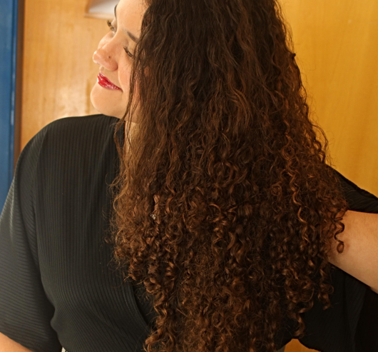 Por muito tempo, Ana viveu com o cabelo “indefinido”. Não sabia se ele se encaixava como liso ou cacheado. Depois do corte, ela passou pela transição capilar, abandonou a química capilar e começou a usar produtos do que estava acostumada. Ela sentiu que com o cabelo curto, a curvatura do cacheado definiu mais rapidamente.