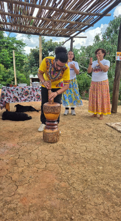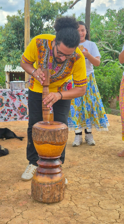 Depois fomos para o Curima Adúfo, ou “trabalho dos tambores” em Cupópia. Para mim e para os visitantes, não foi somente uma oficina de tambores, foi uma aula de história, cultura e transmissão de ancestralidades.
