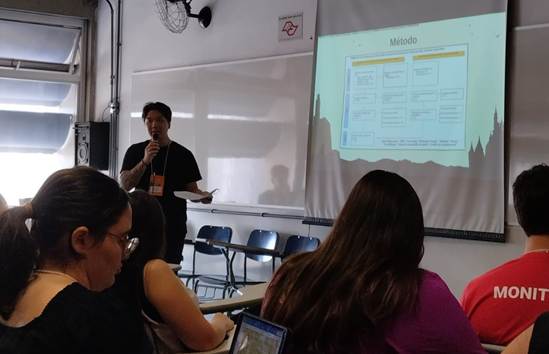 Victor Ykemoto durante a apresentação de sua pesquisa no XXXIV Encontro da ABPMC, em 2025 | Foto: Arquivo pessoal