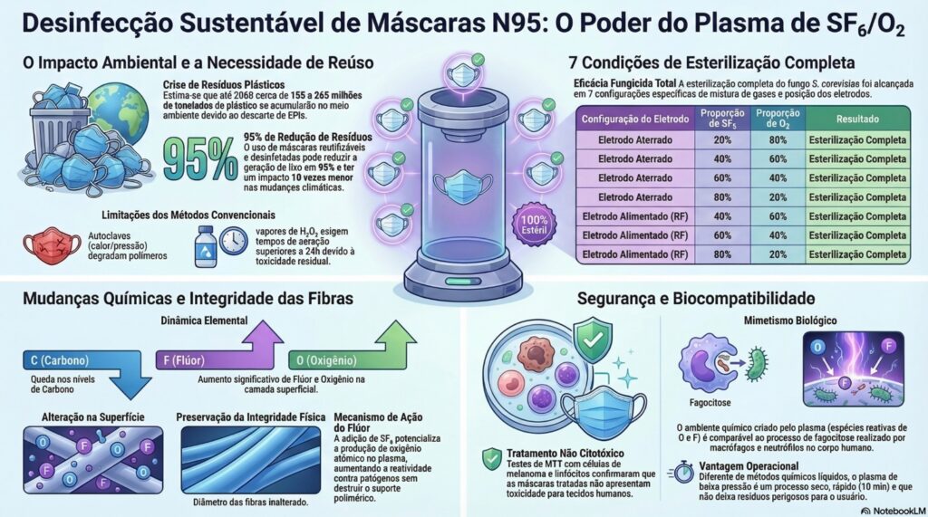 Infográfico resume o funcionamento do plasma de oxigênio e hexafluoreto de enxofre (SF₆) e os principais resultados do estudo | Fonte: NotebookKLM