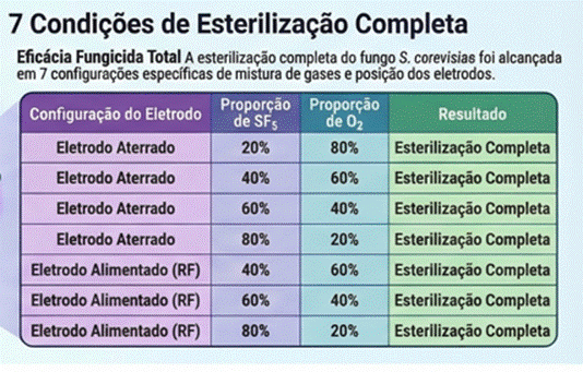Combinações de gases testadas no estudo que resultaram em esterilização completa do fungo Saccharomyces cerevisiae | Fonte: NotebookKLM
