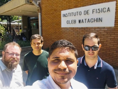 Bruno Aguilar, Denicezar Baldo, Ovídio Francisco e Samuel Rufino visitando o IFGW | Foto: arquivo pessoal Samuel Rufino
