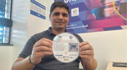 Samuel Rufino com chip quântico | Foto: Rafael Filho