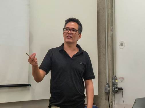 Felipe Shikama durante palestra para alunos de Jornalismo da Uniso | Foto: Rayane Azevedo